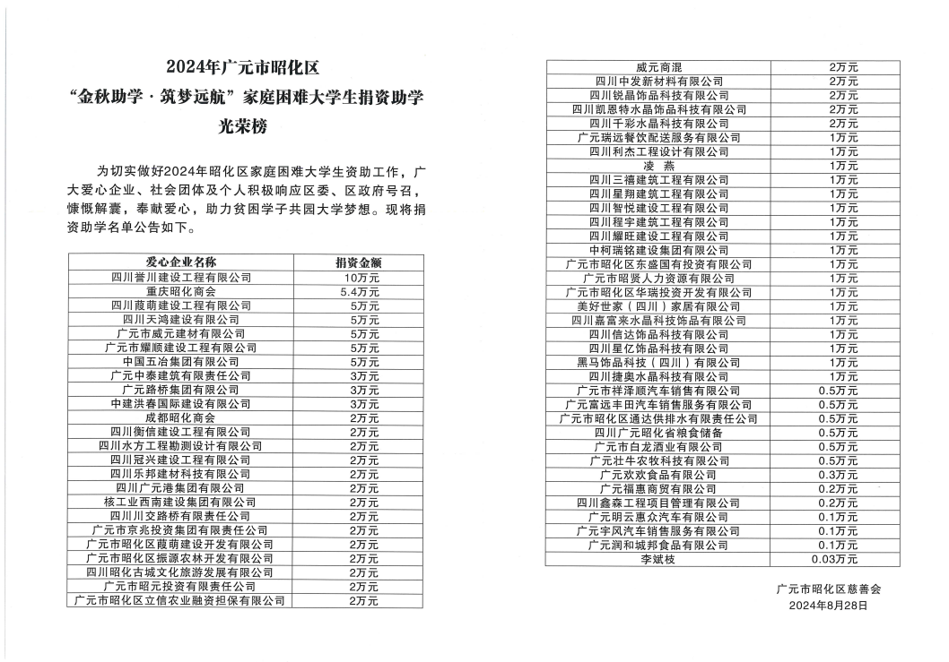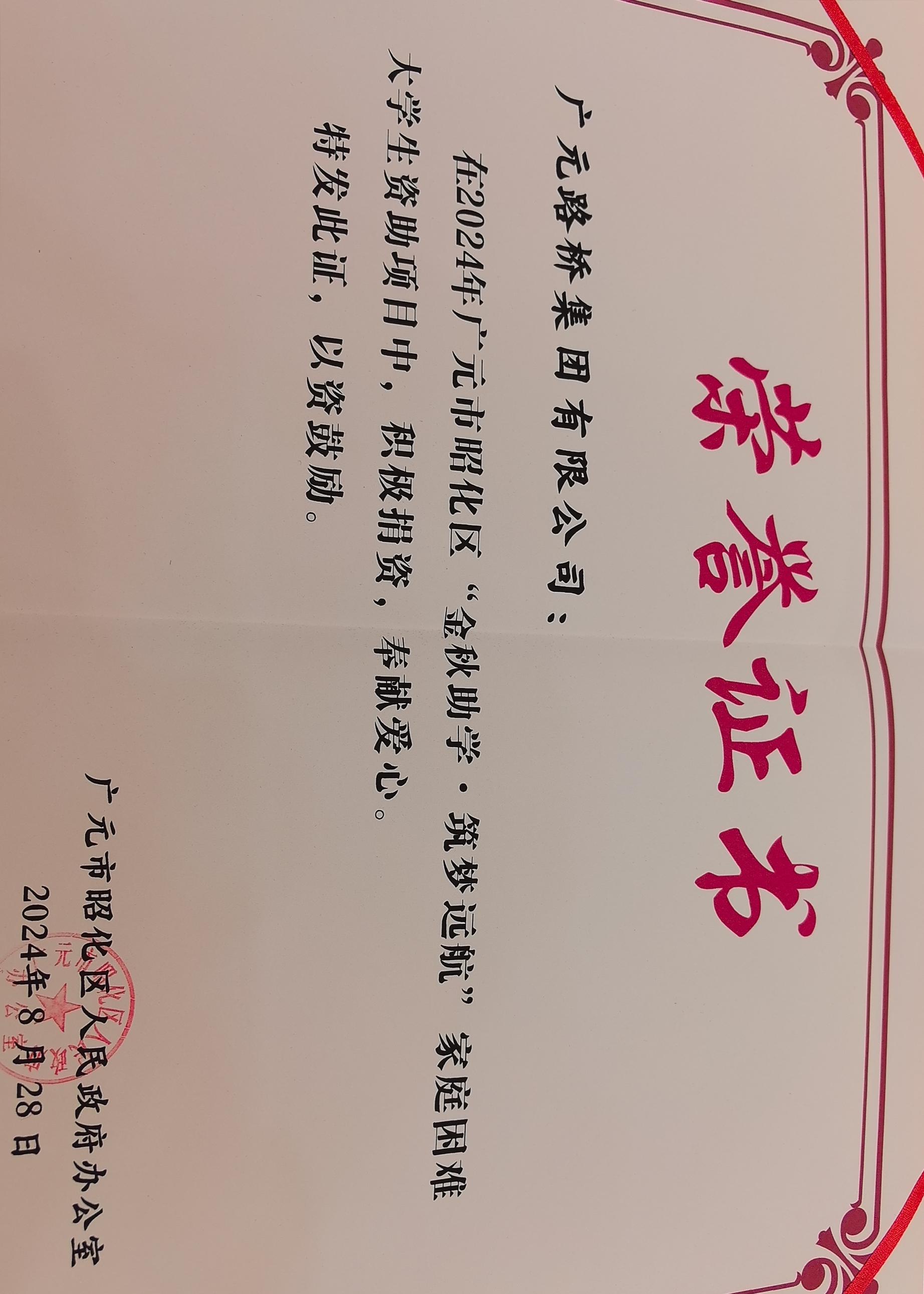 8月28日,昭化區(qū)舉行2024年“金秋助學(xué)·筑夢遠(yuǎn)航”家庭困難大學(xué)生資助儀式,路橋集團(tuán)作為資助企業(yè)參會并獲得表彰。