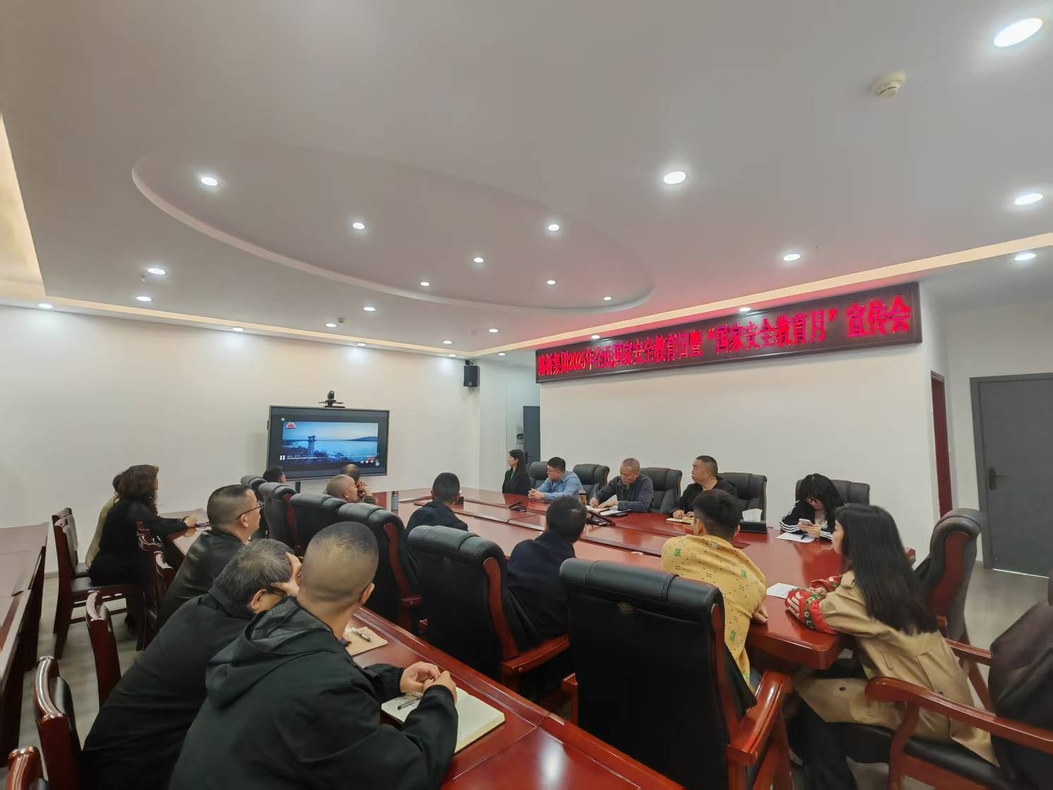 公司各部門干部職工、廣元市利州區(qū)榮山鎮(zhèn)高坑口至周家壩公路建設(shè)工程項(xiàng)目部人員觀看警示視頻,集中學(xué)習(xí)國家安全教育知識(shí)