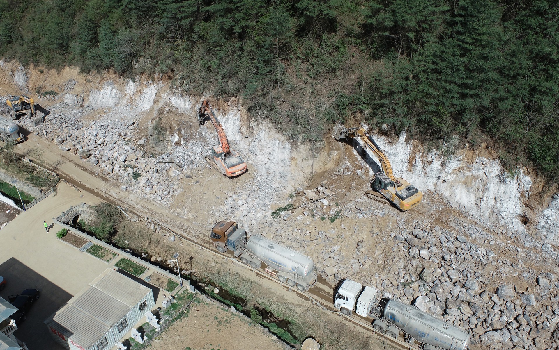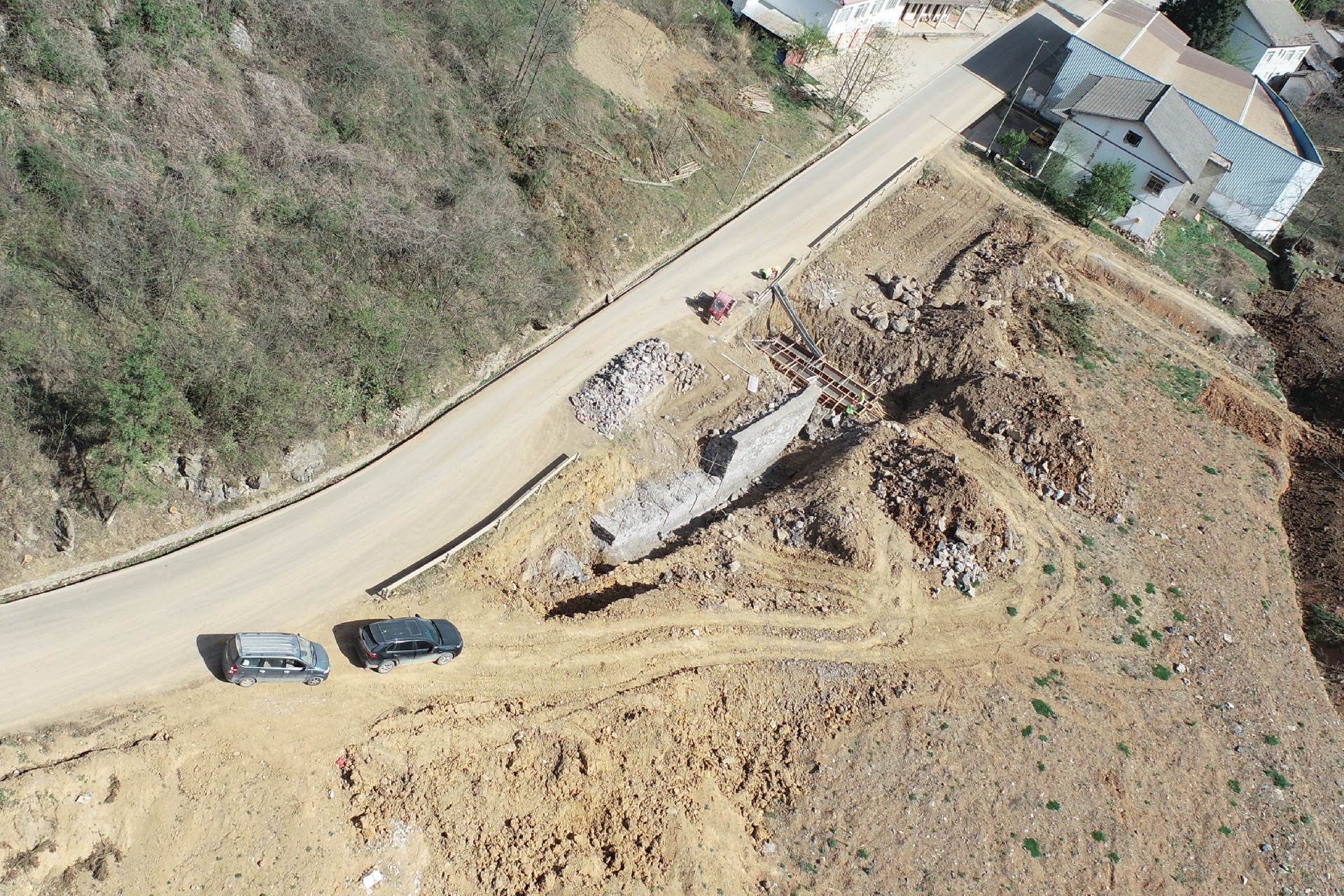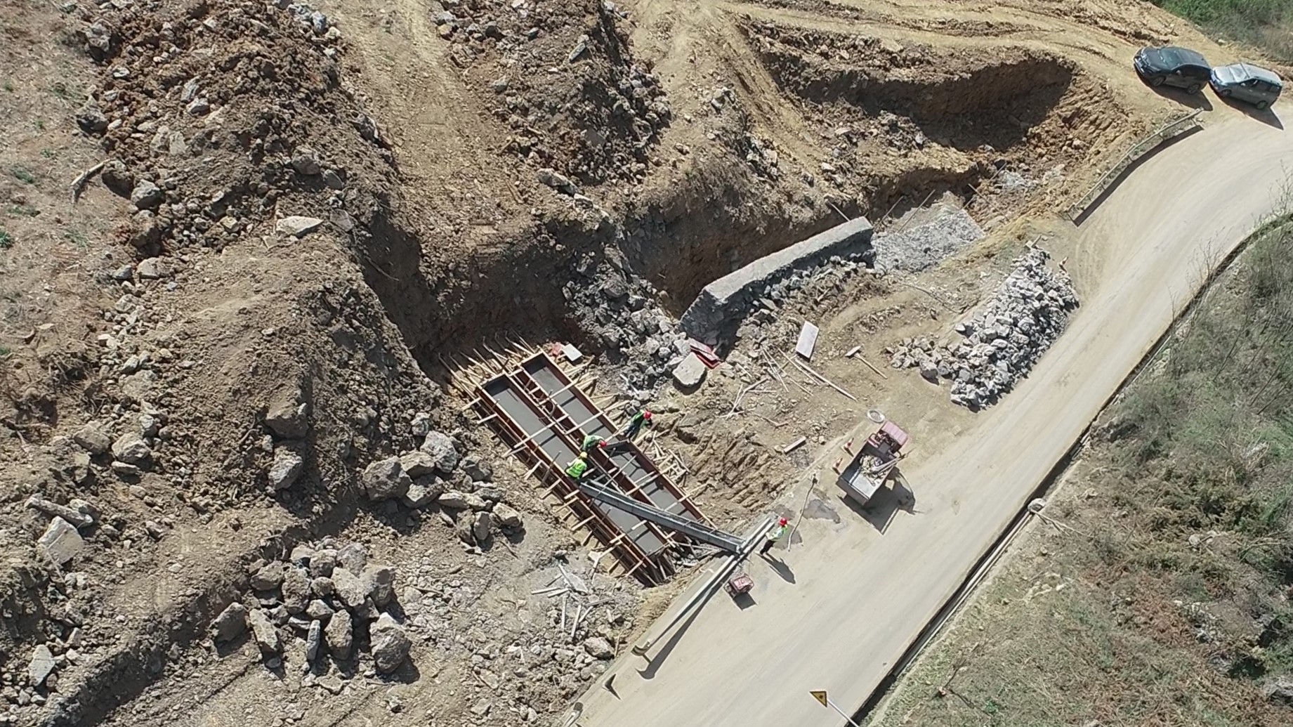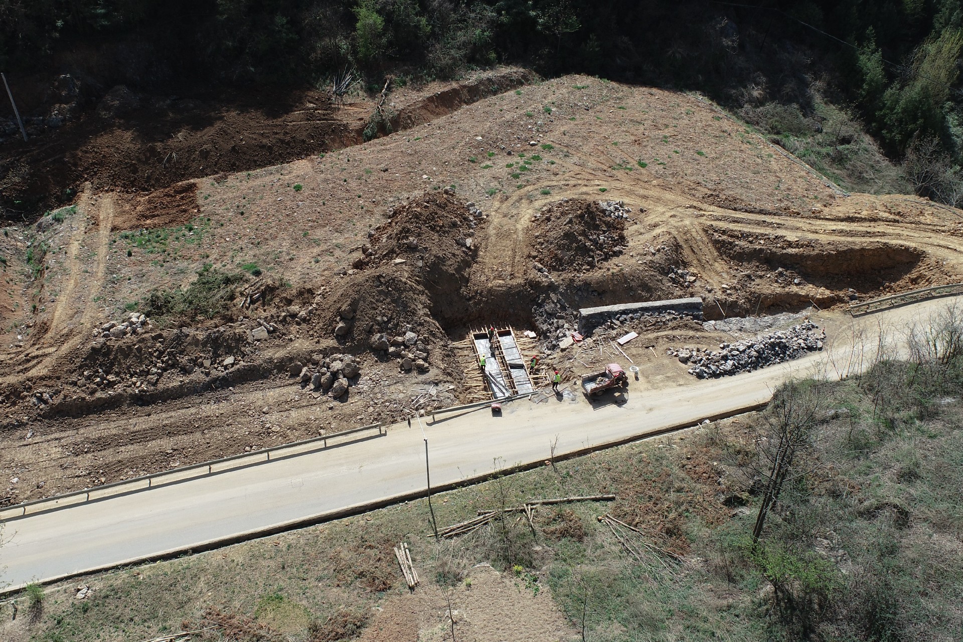 目前正在進(jìn)行主線路基開挖,完成蓋板涵預(yù)制85塊,占總數(shù)52%;擋防工程5023方,占總數(shù)31%;土石方開挖6.5萬方,占總數(shù)12%,利用土石方1.5萬方,占總數(shù)11.5%;場(chǎng)鎮(zhèn)段400米右幅底層6cm油面鋪設(shè)。